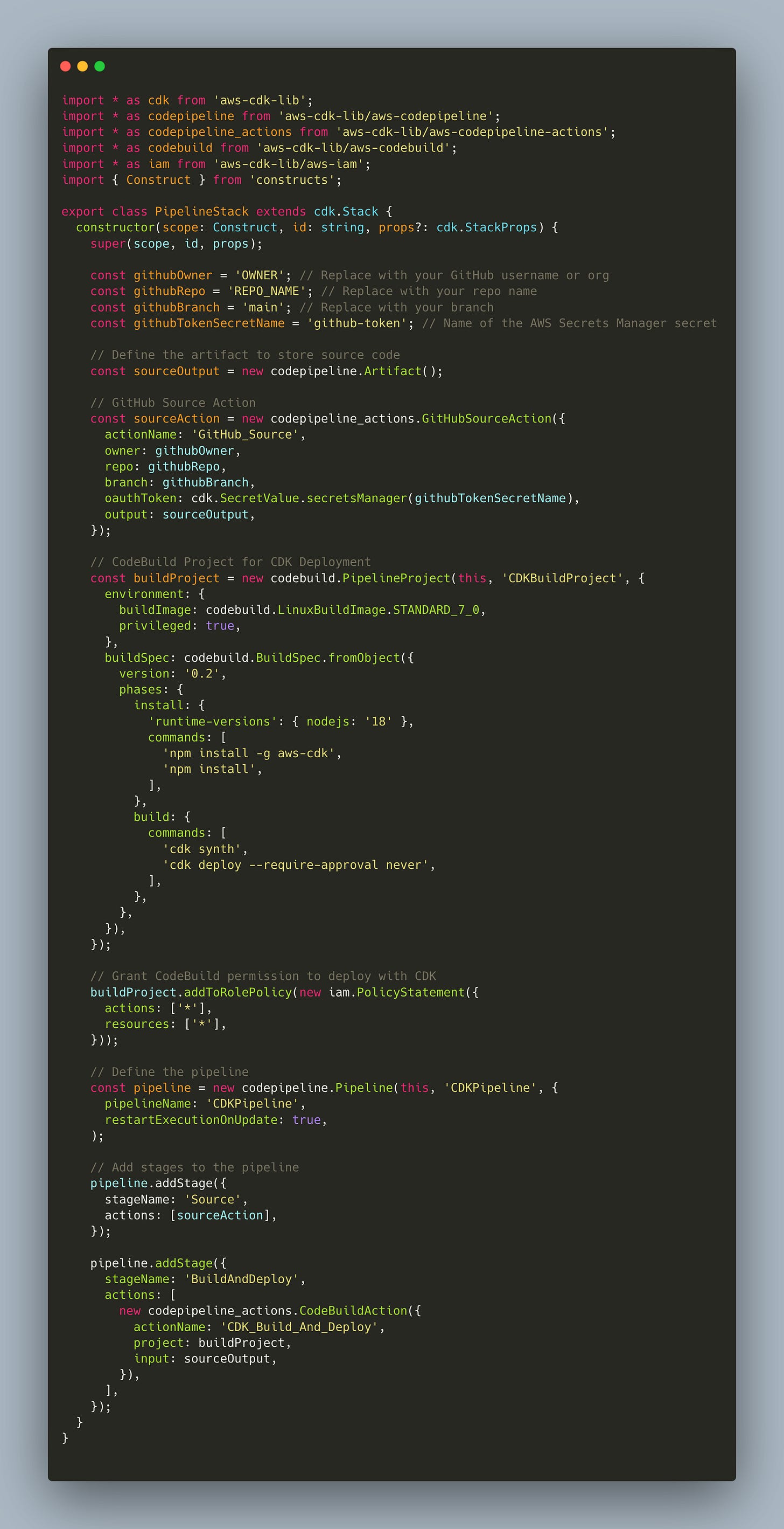 For a smooth, refreshing blend of the previous two approaches. You can develop an in-house pipeline using the CodeSuite L3 constructs directly. This approach allows you to maintain everything in your AWS accounts while providing a smooth transition. The caveat with this one is, “With great power comes great responsibility”.