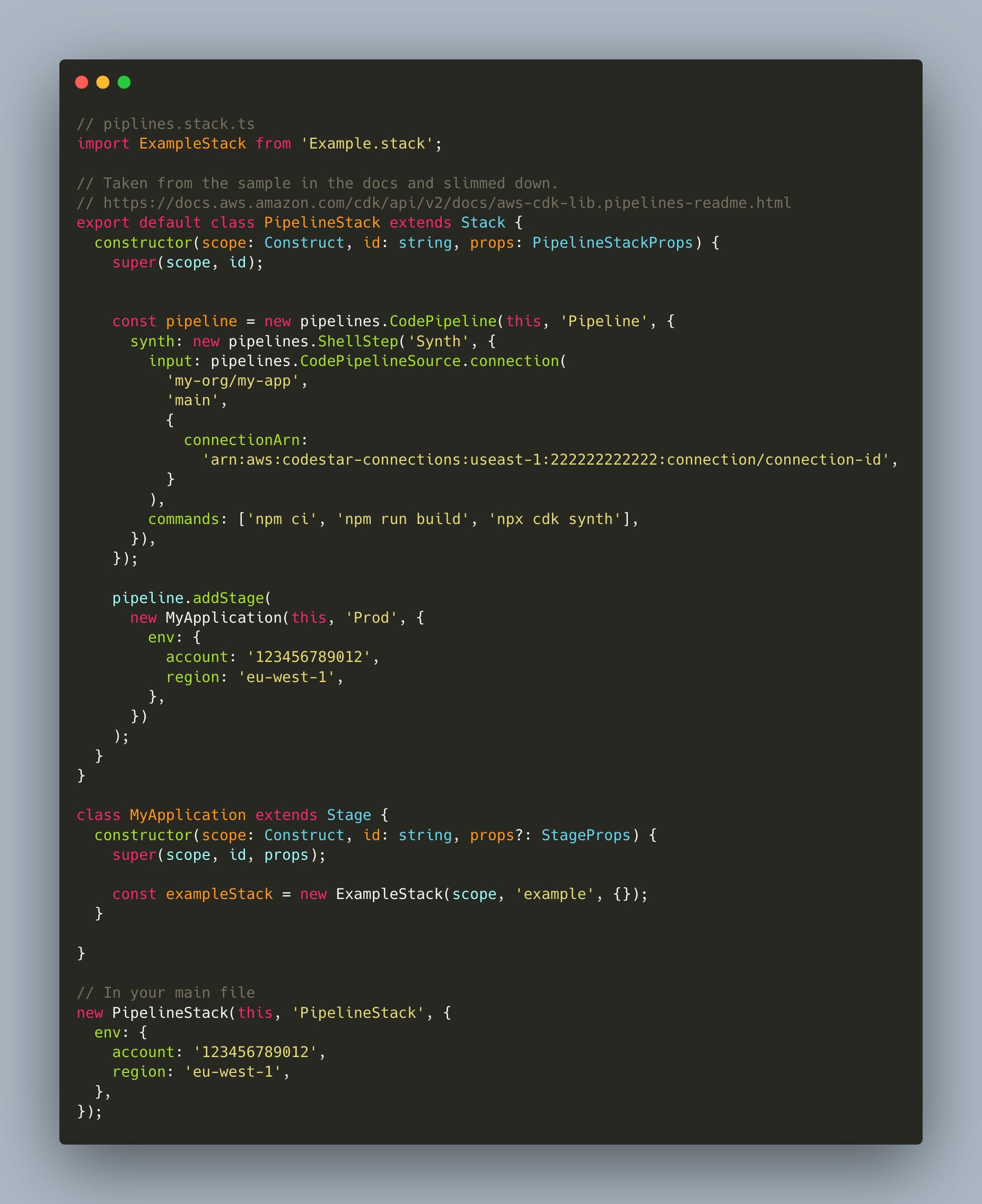 Pipelinesconstruct is small. But its output is significant by comparison.As I mentioned at the start, this is a tradeoff. If the project is destined to be much more than a lambda or two, this might only matter temporarily. But if the purpose is small, you may want to try an alternative process.